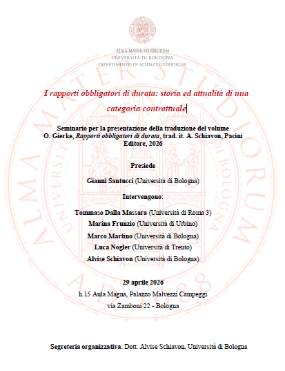 Seminario per la presentazione della traduzione del volume O. Gierke, Rapporti obbligatori di durata, trad. it. A. Schiavon, Pacini Editore, 2026