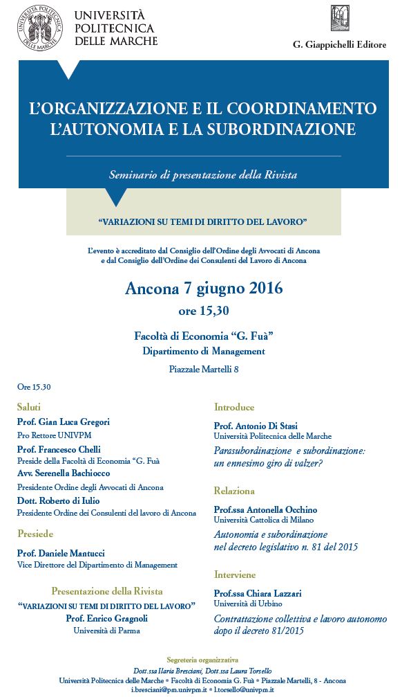 ANCONA - L'organizzazione e il coordinamento | L'autonomia e la subordinazione