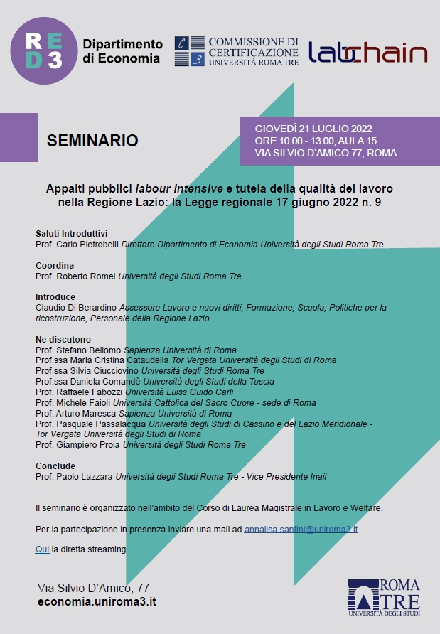 Appalti pubblici labour intensive e tutela della qualità del lavoro nella Regione Lazio: la Legge regionale 17 giugno 2022 n. 9