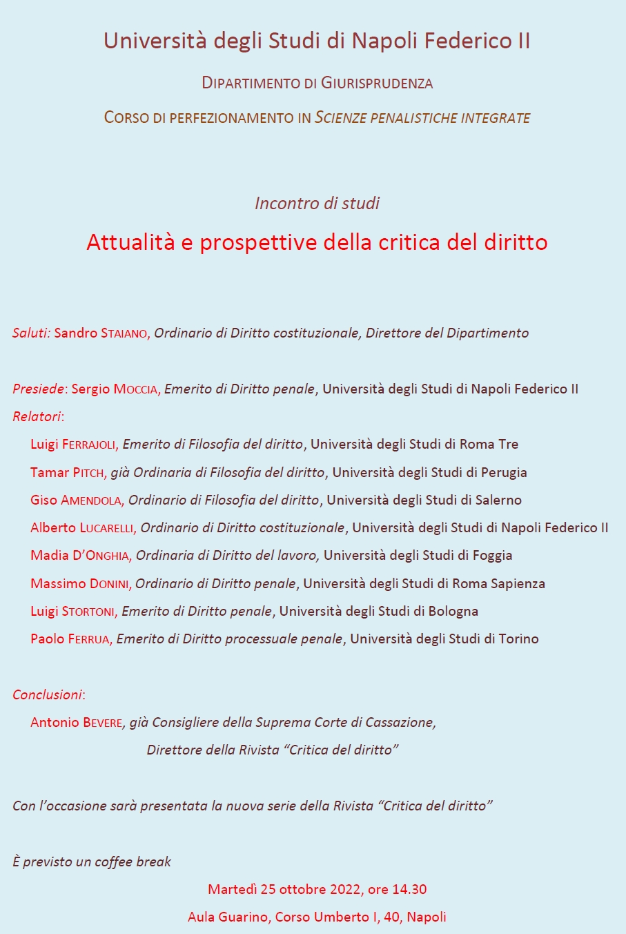 Con l’occasione sarà presentata la nuova serie della Rivista “Critica del diritto”