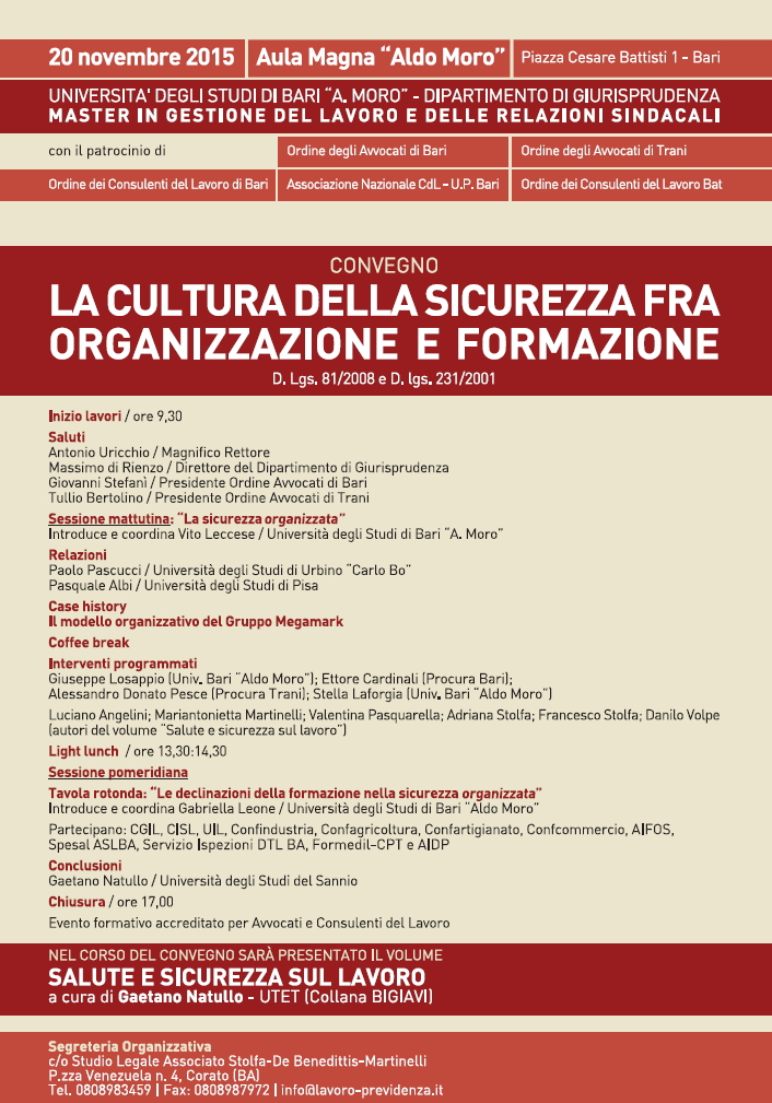 BARI - La cultura della sicurezza fra organizzazione e formazione | D.Lgs. 81/2008 e D.Lgs. 230/2001