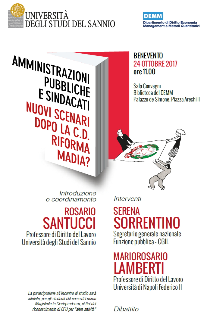 Da Mar, 24/10/2017 a Mar, 24/10/2017 Mode On-site-only 14/11/2022 BENEVENTO - Amministrazioni pubbliche e sindacati | Nuovi scenari dopo la c.d. riforma Madia on-site only | Piazza Arechi II - ore 11 (