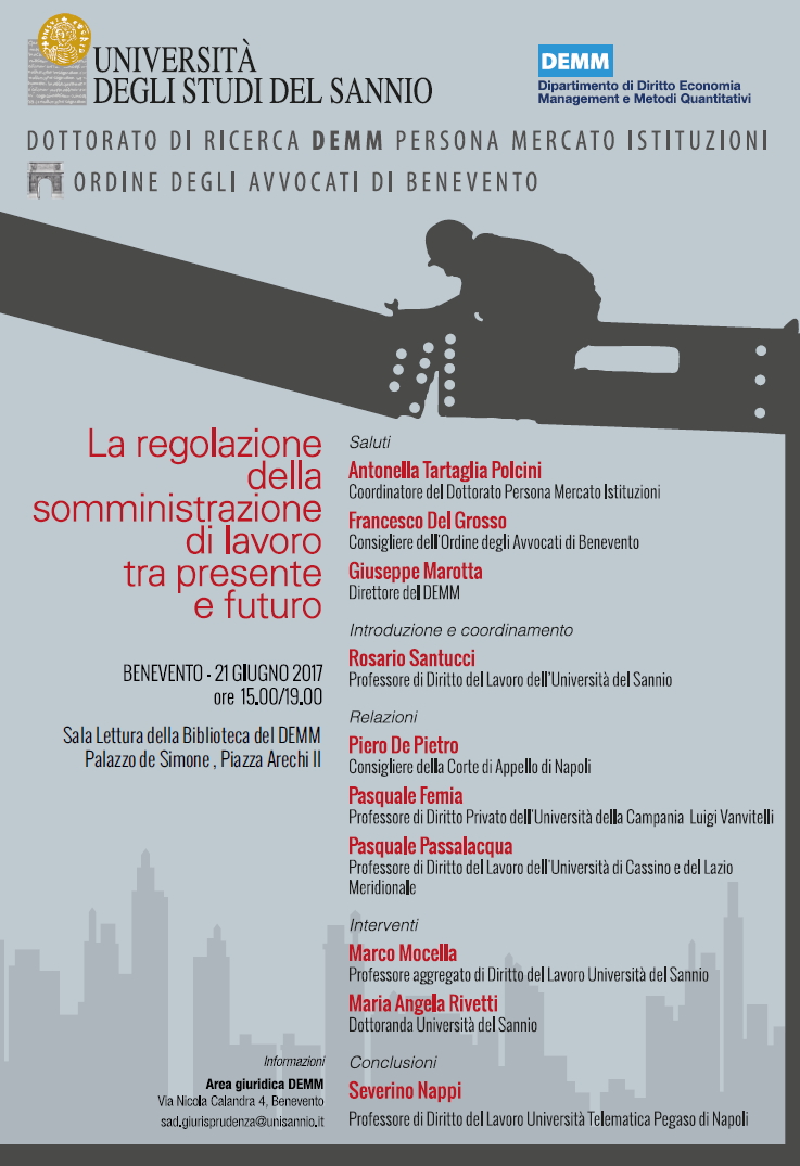 Da Mer, 21/06/2017 a Mer, 21/06/2017 Mode On-site-only 14/11/2022 BENEVENTO - La regolazione della somministrazione di lavoro tra presente e futuro on-site only | Piazza Arechi II - ore 15