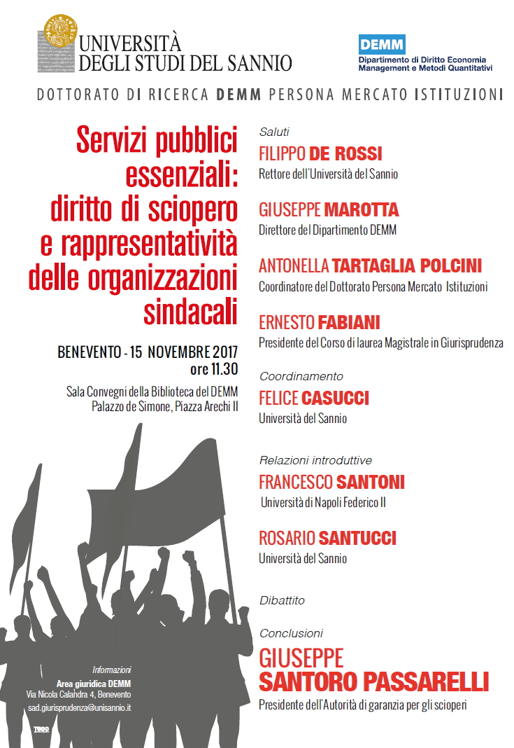 Da Mer, 15/11/2017 a Mer, 15/11/2017 Mode On-site-only 14/11/2022 BENEVENTO - Servizi pubblici essenziali: diritto di sciopero e rappresentatività delle organizzazioni sindacali on-site only | Piazza Arechi II - ore 11.30