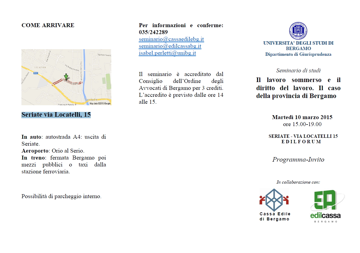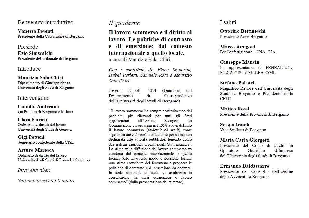 BERGAMO - Il lavoro sommerso e il diritto del lavoro. Il caso della provincia di Bergamo