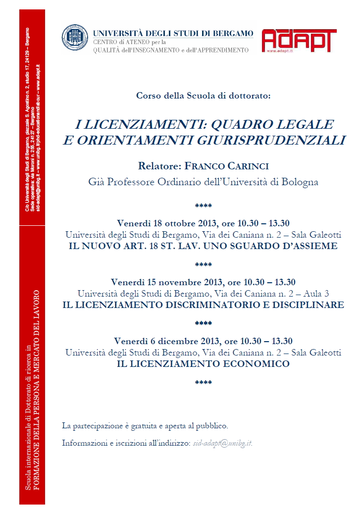 BERGAMO - Il licenziamento discriminatorio e disciplinare. Lezione del prof. F. Carinci