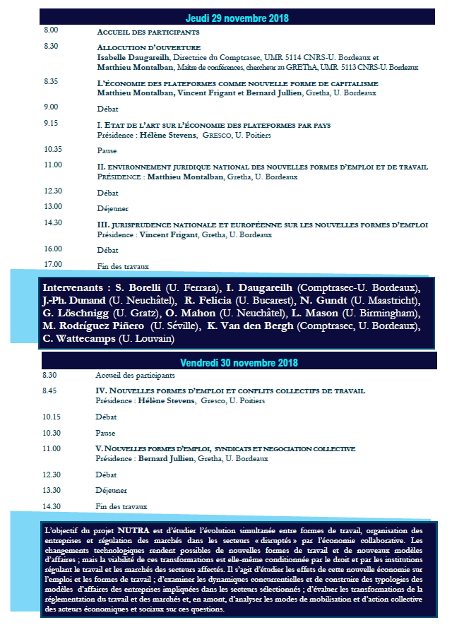 BORDEAUX - Économie des plateformes : Travail, emploi et organisation - Perspectives juridiques et approche comparative (29-30 Novembre 2018)