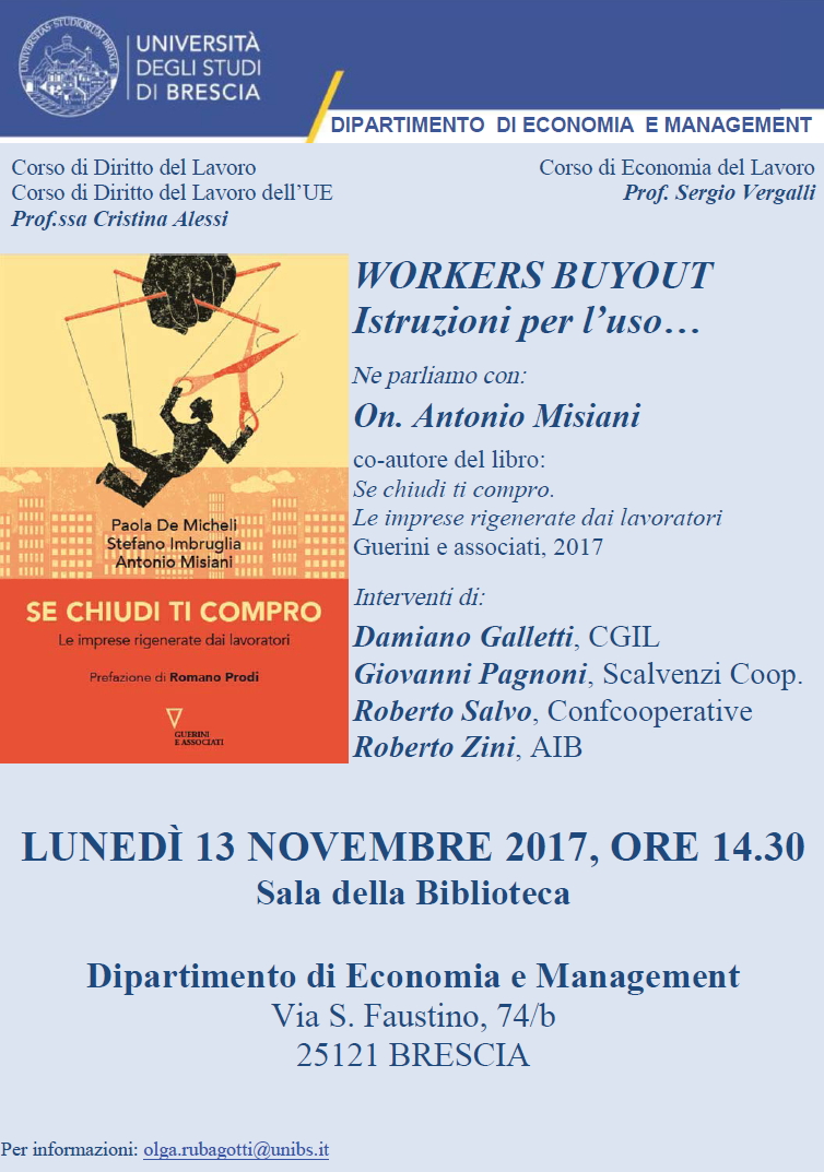 Da Lun, 13/11/2017 a Lun, 13/11/2017 Mode On-site-only 14/11/2022 BRESCIA - Workers Buyout - Istruzioni per l'uso... on-site only | Via S. Faustino, 74/b - ore 14.30