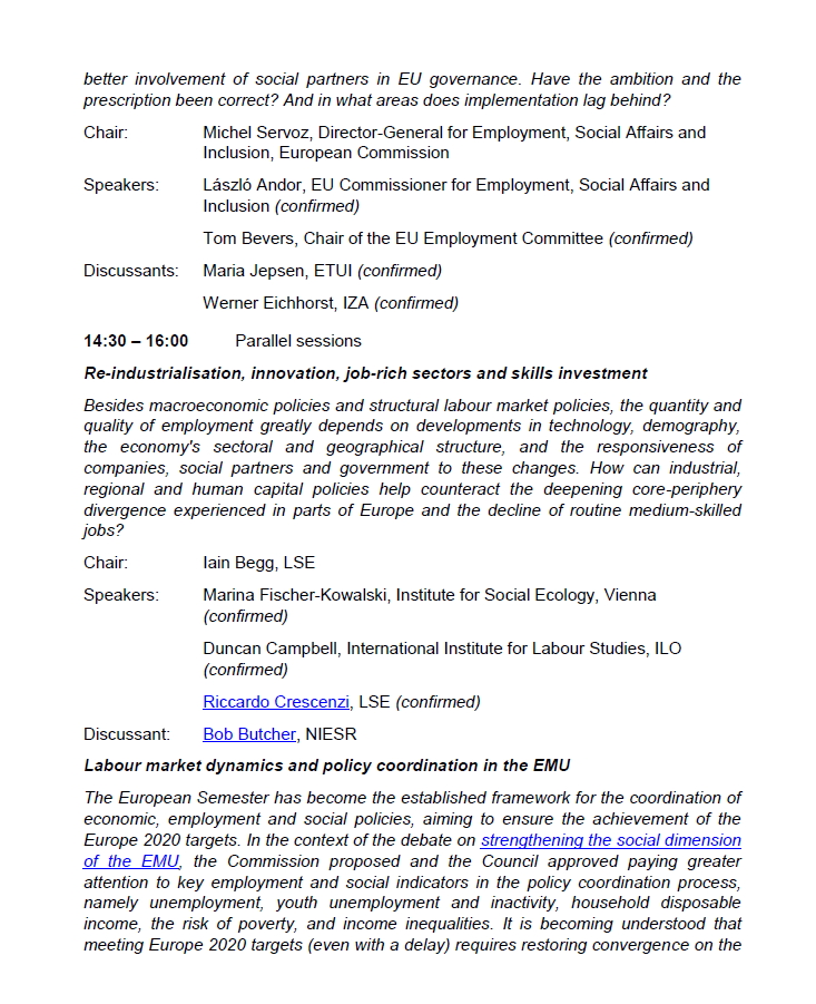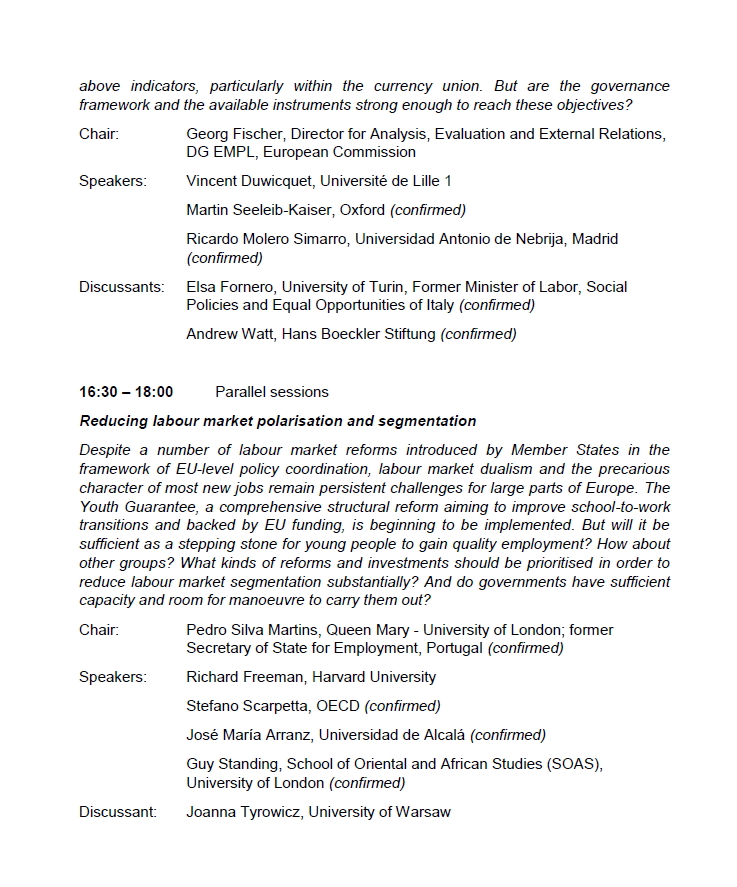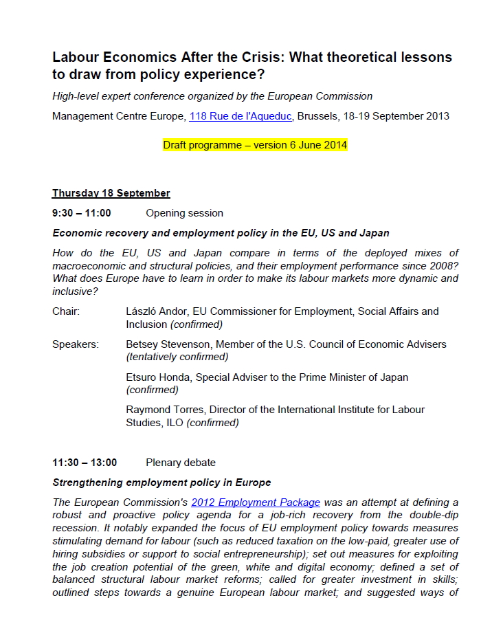 BRUSSELS - Labour Economics After the Crisis: What theoretical lessons to draw from policy experience? High-level expert conference (18-19 September 2014)