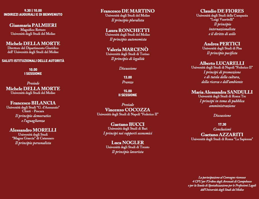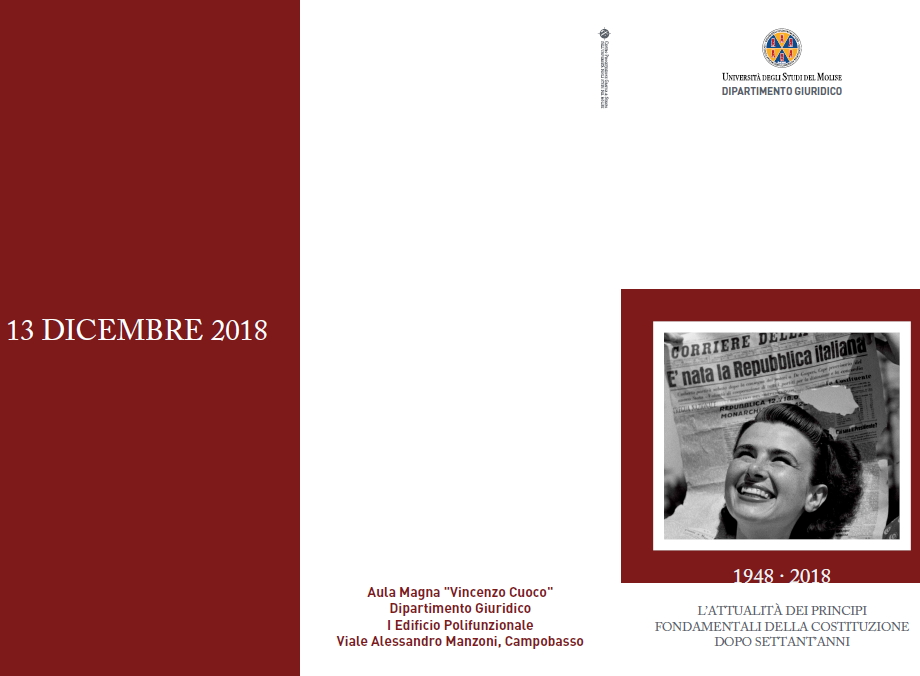 CAMPOBASSO - 1948-2018. L'attualità dei principi fondamentali della Costituzione dopo settant'anni