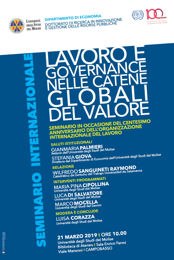 Da Gio, 21/03/2019 a Gio, 21/03/2019 Mode On-site-only 14/11/2022 CAMPOBASSO - Lavoro e governance nelle catene globali del valore on-site only | Viale Manzoni - ore 10