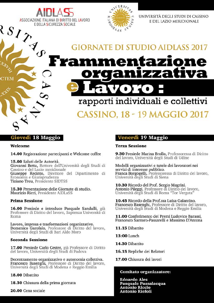 Da Gio, 18/05/2017 a Gio, 18/05/2017 Mode On-site-only 14/11/2022 CASSINO - Frammentazione organizzativa e lavoro: rapporti individuali e collettivi (18-19 maggio 2017) on-site only |