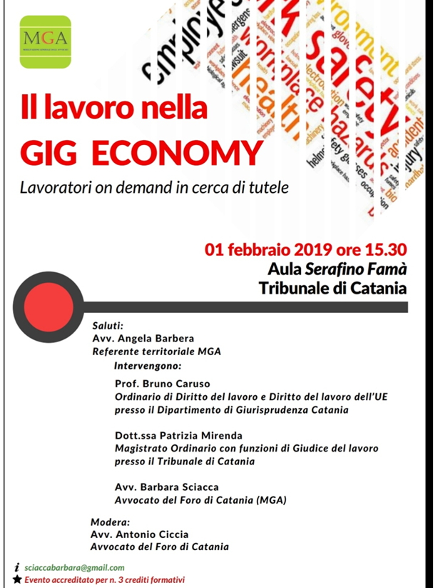 Da Ven, 01/02/2019 a Ven, 01/02/2019 Mode On-site-only 14/11/2022 CATANIA - Il lavoro nella gig economy. Lavoratori on demand in cerca di tutele on-site only | Aula Serafino Famà - ore 15.30