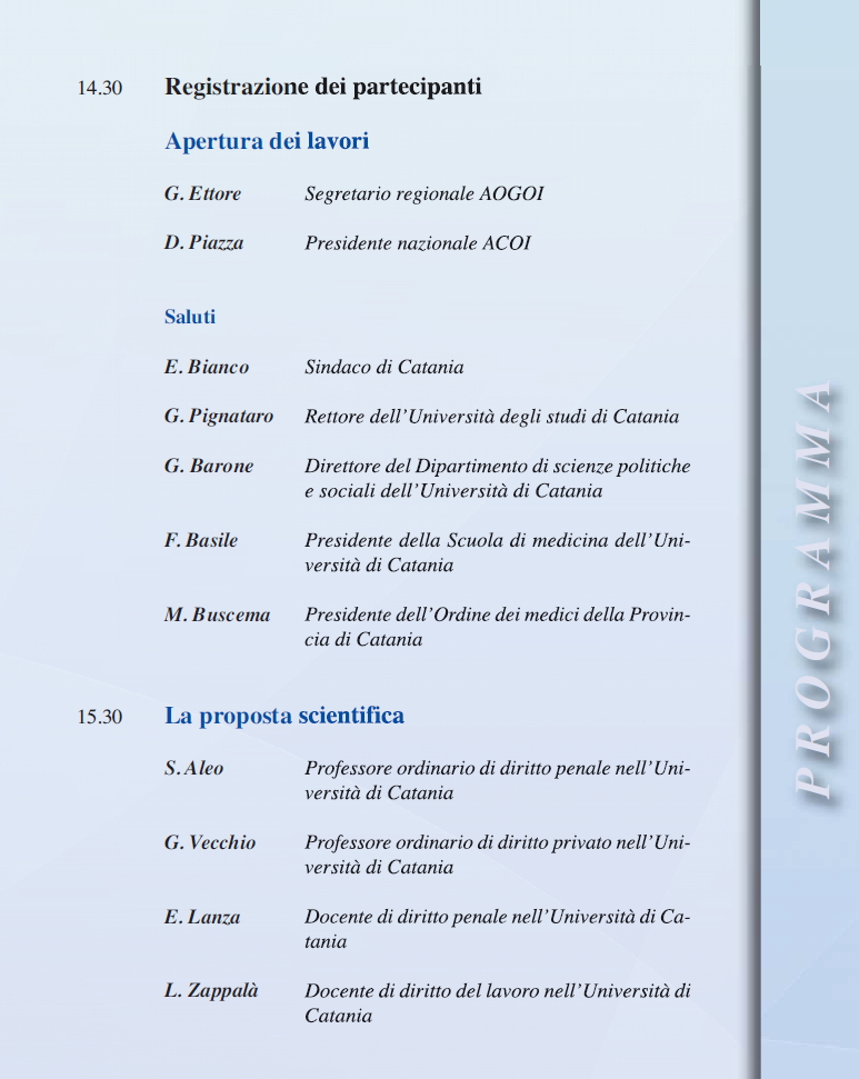 CATANIA - Presentazione dell'opera 'Le responsabilità in ambito sanitario' (a cura di S. Aleo, R. De Matteis, G. Vecchio)