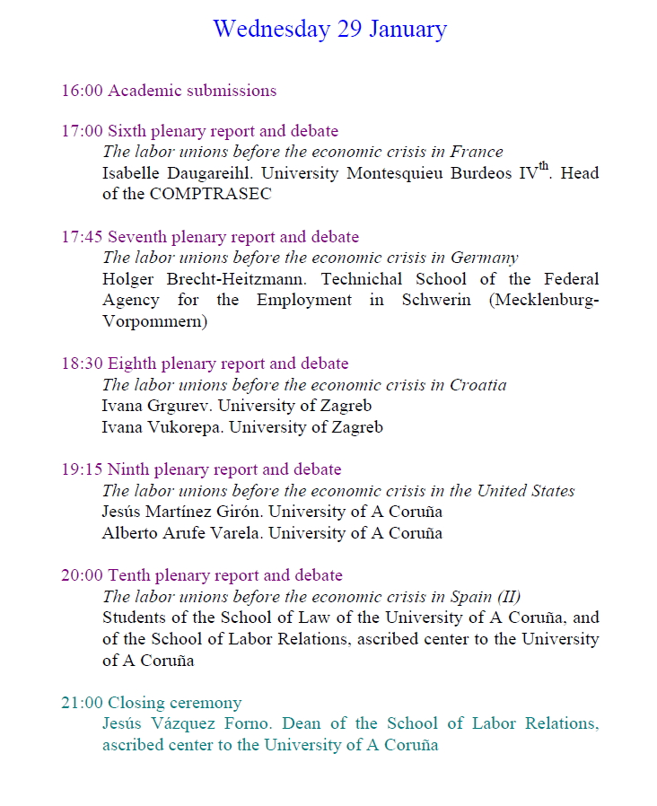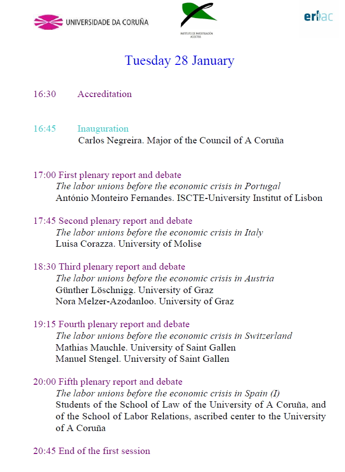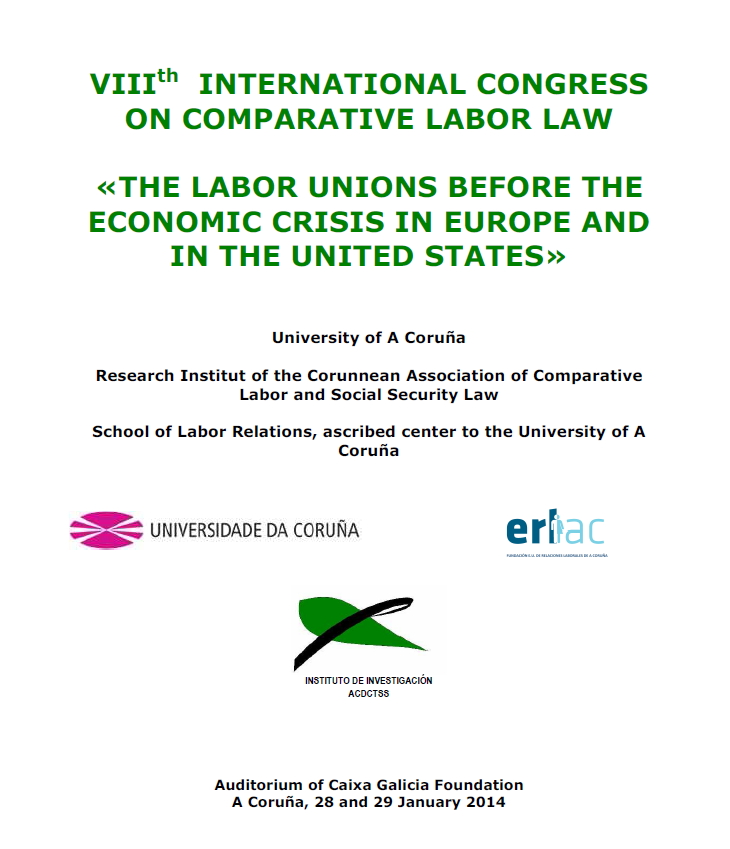 A CORUÑA - The Labor Unions before the economic crisis in Europe and in the United States. VIII International Congress on Comparative Labor Law (28-29 January 2014)