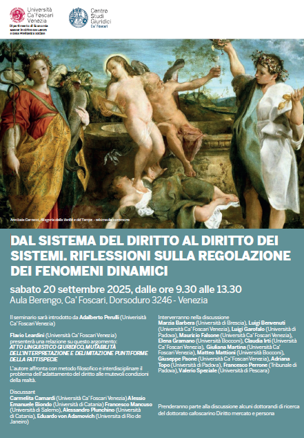Da Sab, 20/09/2025 a Sab, 20/09/2025 Mode On-site-only File Programma672.49 KB 05/09/2025 Dal sistema del diritto al diritto dei sistemi. Riflessioni sulla regolazione dei fenomeni dinamici on-site only h. 9:30 | Dorsoduro 3246, Venezia Università Ca' Foscari Aula Berengo