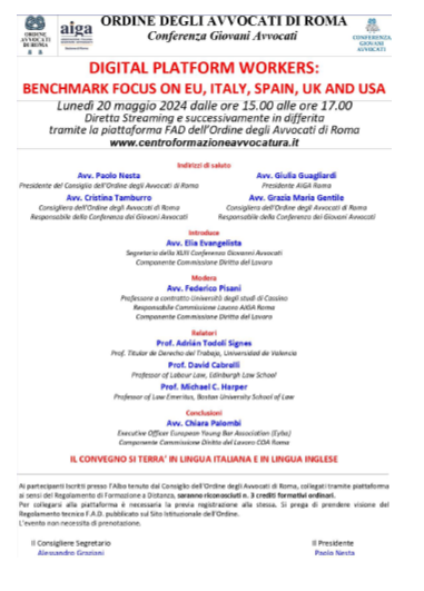 Digital Platform Workers: Benchmark Focus on EU, Italy, Spain, UK and USA