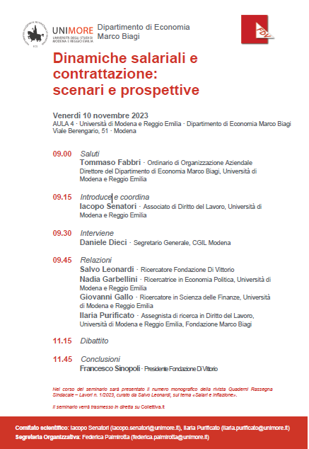 Nel corso del seminario sarà presentato il numero monografico della rivista Quaderni Rassegna Sindacale – Lavori n. 1/2023, curato da Salvo Leonardi, sul tema «Salari e inflazione».