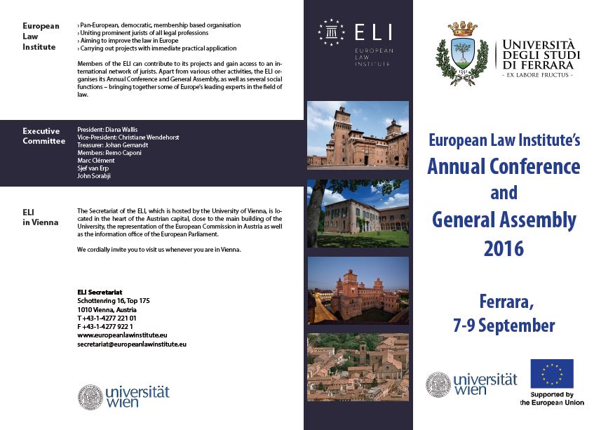 FERRARA - European Law Institute’s | Annual Conference and General Assembly 2016 (7-9 September 2016)