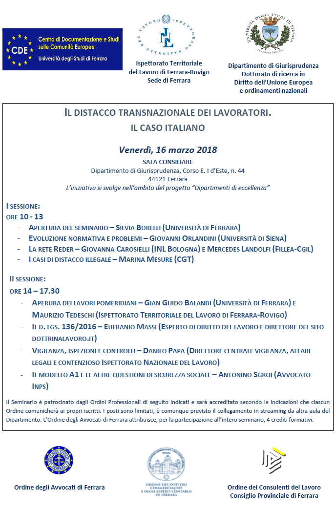Da Ven, 16/03/2018 a Ven, 16/03/2018 Mode On-site-only 14/11/2022 FERRARA - Il distacco transnazionale dei lavoratori. Il caso italiano on-site only |