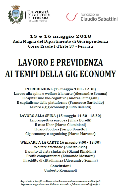 FERRARA - Lavoro e previdenza ai tempi della Gig Economy (15-16 maggio 2018)