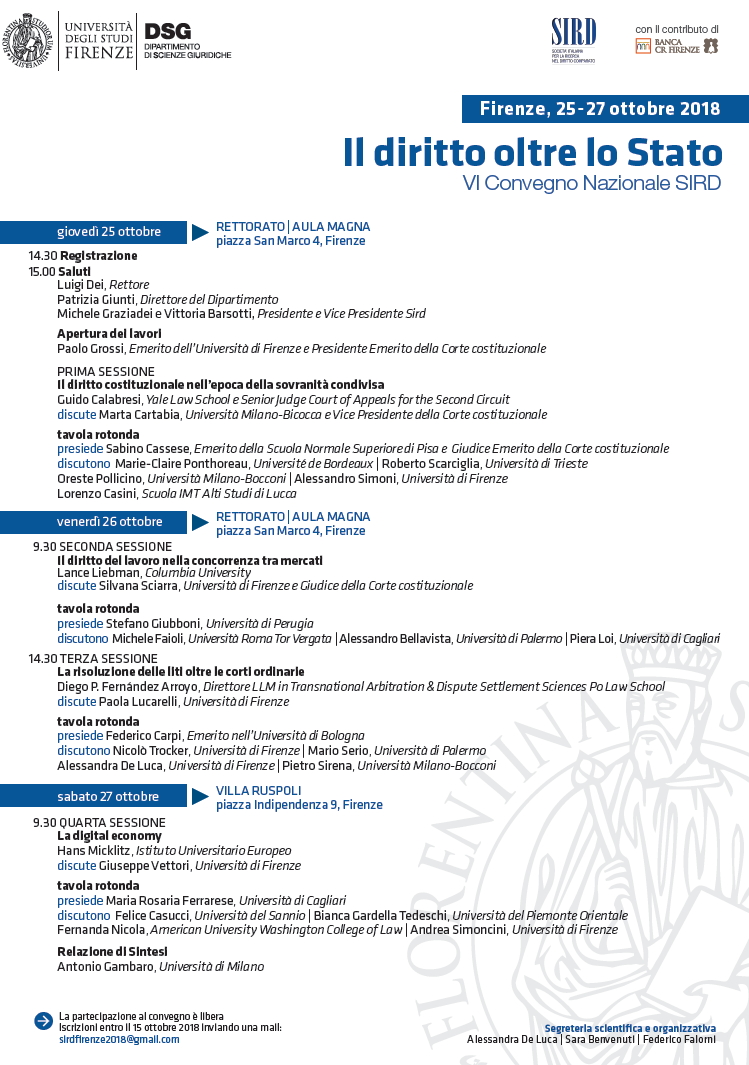 Da Gio, 25/10/2018 a Gio, 25/10/2018 Mode On-site-only 14/11/2022 FIRENZE - Il diritto oltre lo Stato (25-27 ottobre 2018) on-site only | Piazza San Marco, 4 - ore 14:30