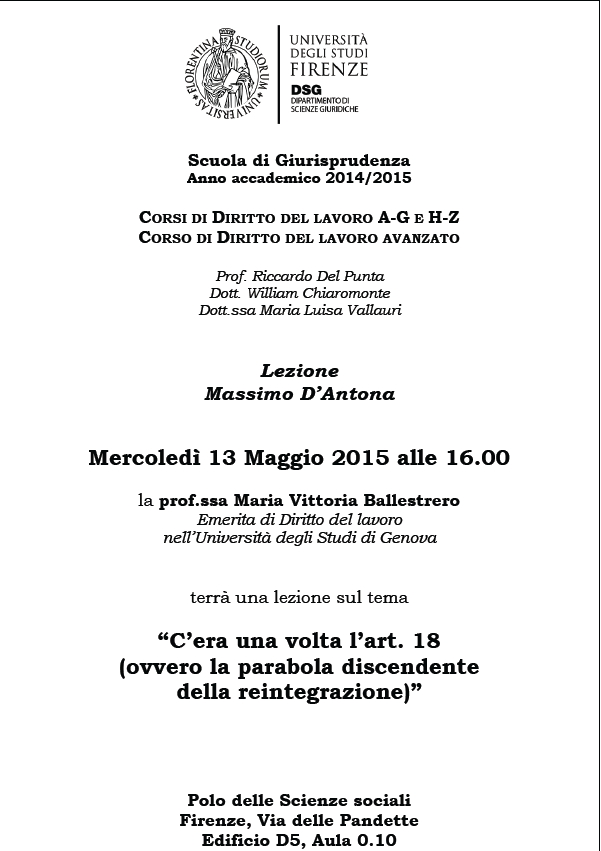 FIRENZE - Lezione "Massimo D'Antona": C'era una volta l'art. 18 (ovvero la parabola discendente della reintegrazione)