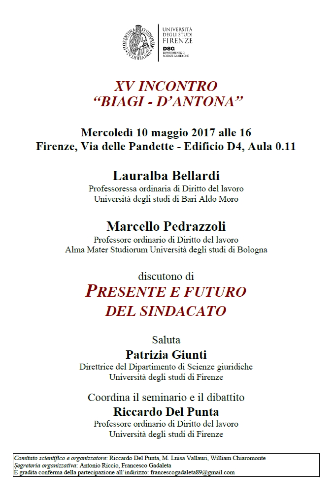 Da Mer, 10/05/2017 a Mer, 10/05/2017 Mode On-site-only 14/11/2022 FIRENZE - Presente e futuro del sindacato on-site only | Via delle Pandette - ore 16