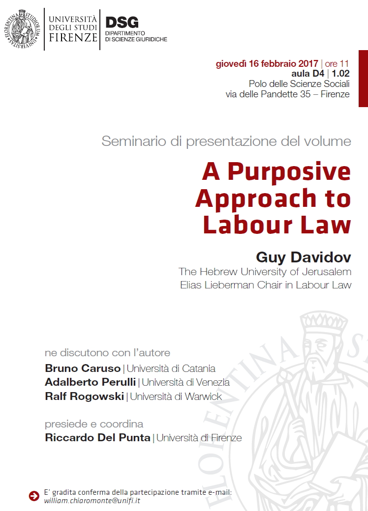 Da Gio, 16/02/2017 a Gio, 16/02/2017 Mode On-site-only 14/11/2022 FIRENZE - A Purposive Approach to Labour Law on-site only | Via delle Pandette, 35 - ore 11