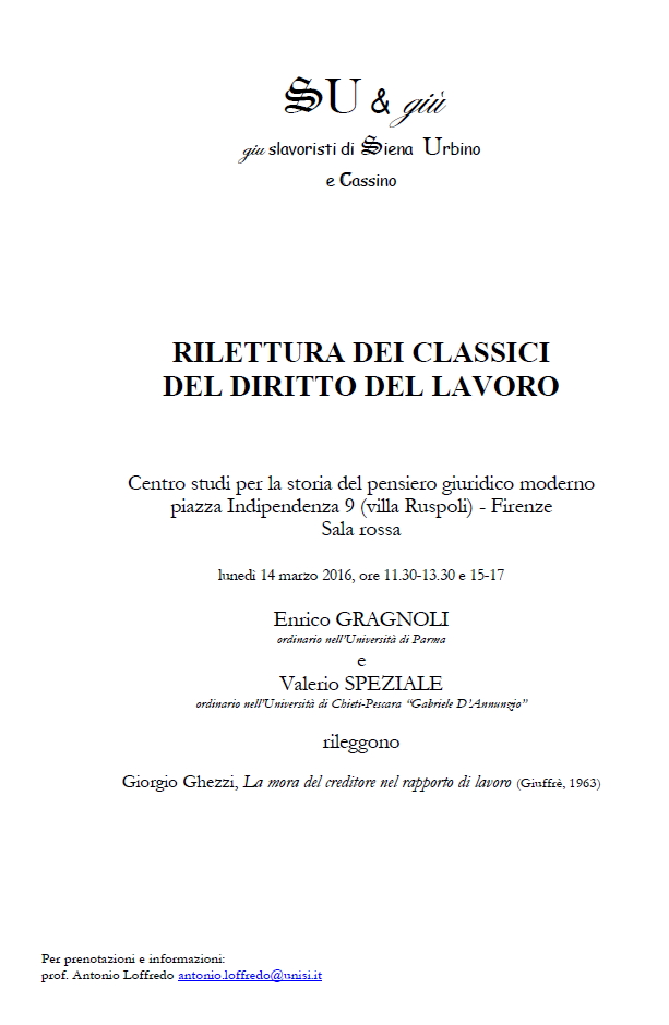 FIRENZE - Riletture dei classici del diritto del lavoro
