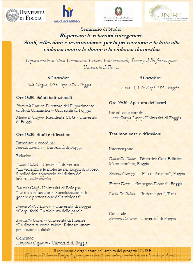 FOGGIA - Ri-pensare le relazioni intergenere. Studi, riflessioni e testimonianze per la prevenzione e la lotta alla violenza contro le donne e la violenza domestica (2-3 ottobre 2019)