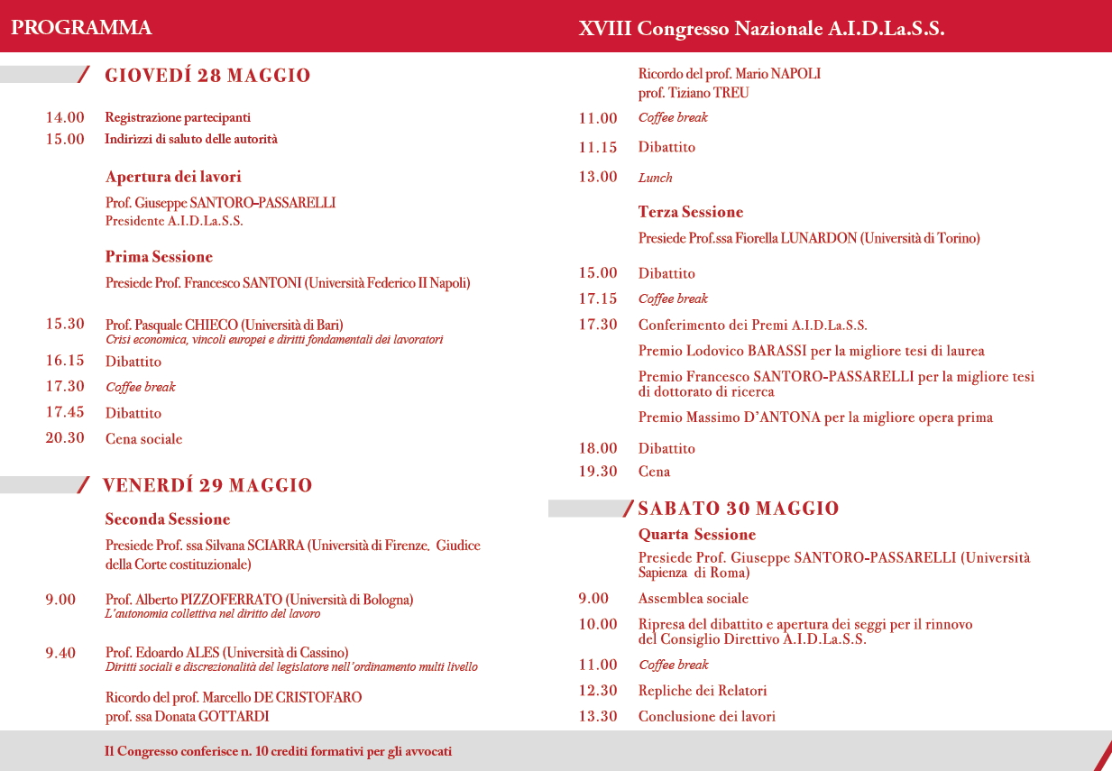 FOGGIA - XVIII Congresso Nazionale A.I.D.La.S.S. 2015 - Lavoro, diritti fondamentali e vincoli economico-finanziari nell’ordinamento multi livello (28-30 maggio 2015)