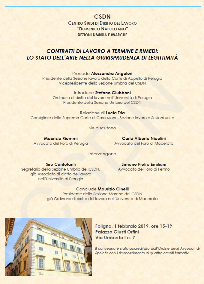 FOLIGNO - Contratti di lavoro a termine e rimedi: lo stato dell'arte nella giurisprudenza di legittimità