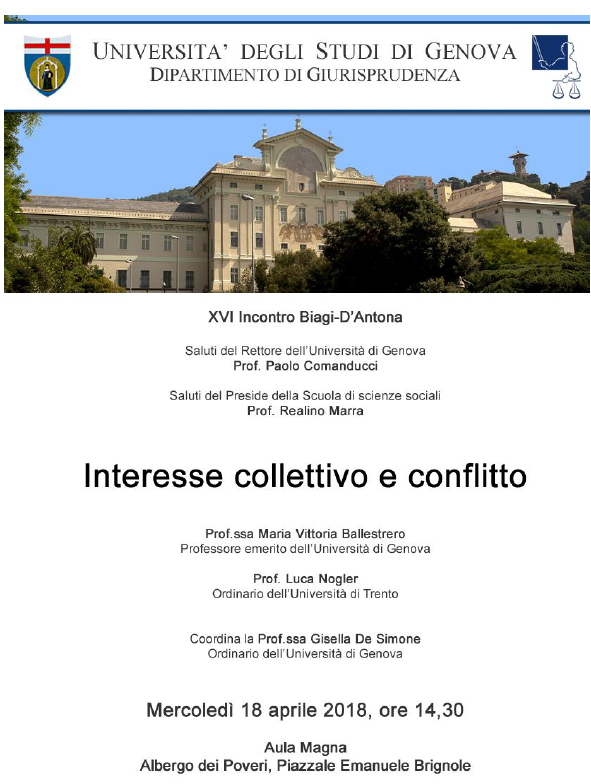 Da Mer, 18/04/2018 a Mer, 18/04/2018 Mode On-site-only 14/11/2022 GENOVA - XVI Incontro Biagi-D'Antona | Interesse collettivo e conflitto on-site only | Piazzale Emanuele Brignole- ore 14.30 Programma
