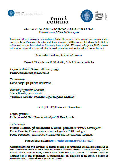 Per partecipare on line: https://uniurb-it.zoom.us/j/83157574128