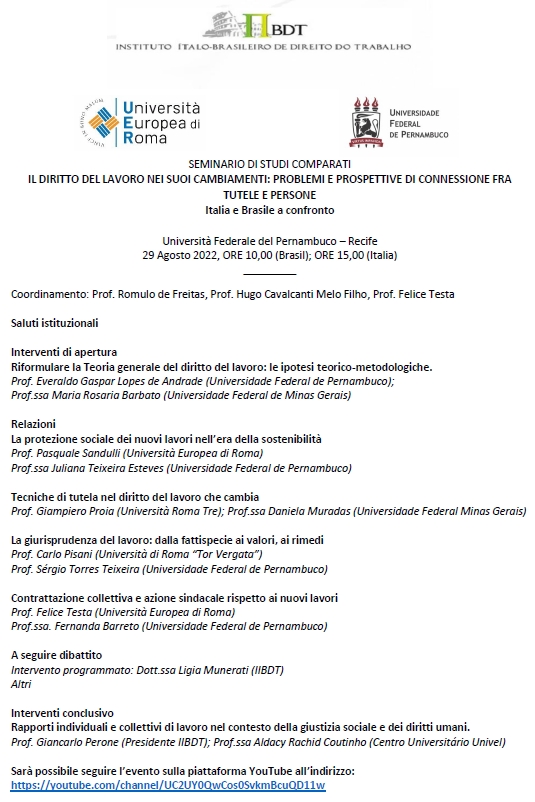 Il diritto del lavoro nei suoi cambiamenti: problemi e prospettive di connessione fra tutele e persone - Italia e Brasile a confronto