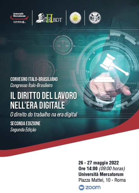 Da Gio, 26/05/2022 a Ven, 27/05/2022 Mode Hybrid File Programma1.6 MB Papers202.47 KB 17/05/2022 Il diritto del lavoro nell’era digitale hybrid h. 14 | 26-27 maggio 2022 Università Mercatorum Piazza Mattei, 10 - Roma Sarà possibile seguire l'evento anche a distanza mediante "Zoom"