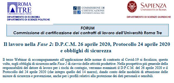 Il lavoro nella Fase 2: D.P.C.M. 26 aprile 2020, Protocollo 24 aprile 2020 e obblighi di sicurezza
