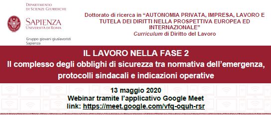 Da Mer, 13/05/2020 a Mer, 13/05/2020 Mode Online-only 14/11/2022 Il lavoro nella Fase 2. Il complesso degli obblighi di sicurezza tra normativa dell’emergenza, protocolli sindacali e indicazioni operative online only | ore 10