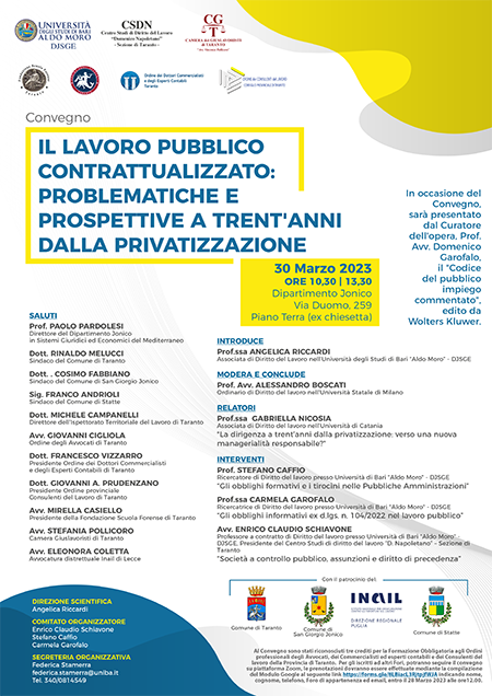 In occasione del Convegno, sarà presentato dal Curatore dell'opera, Prof. Avv. Domenico Garofalo, il "Codice del pubblico impiego commentato", edito da Wolters Kluwer.