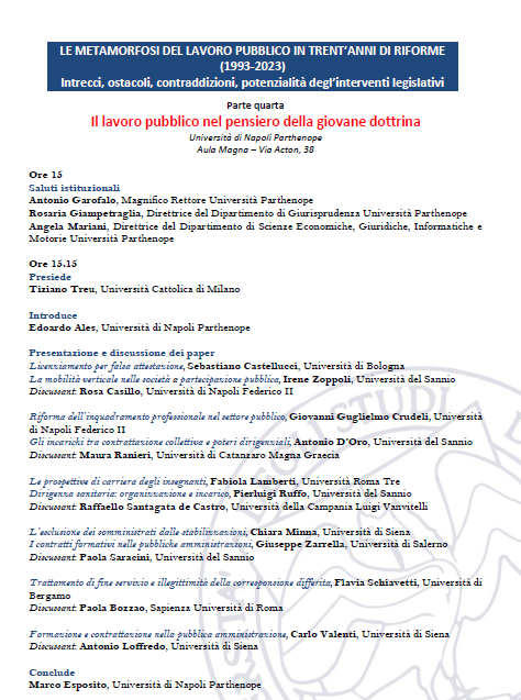 Quarta parte del Convegno di studio su "Le metamorfosi del lavoro pubblico in trent'anni di riforme" (Napoli dal 29 al 30 novembre 2023)