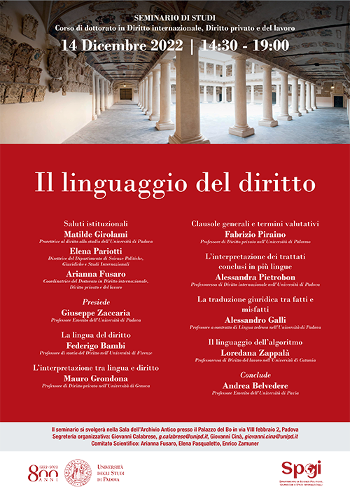Il seminario si svolgerà nella Sala dell’Archivio Antico presso il Palazzo del Bo in via VIII febbraio 2, Padova