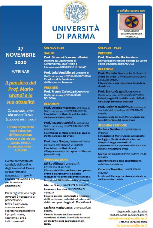 Da Ven, 27/11/2020 a Ven, 27/11/2020 Mode Online-only 14/11/2022 Il Pensiero del Prof. Mario Grandi e la sua attualità online only | ore 9 (download locandina in formato .
