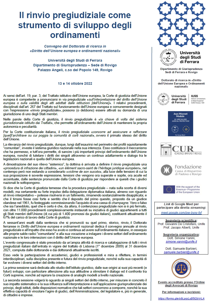 Convegno del Dottorato di ricerca in «Diritto dell’Unione europea e ordinamenti nazionali»