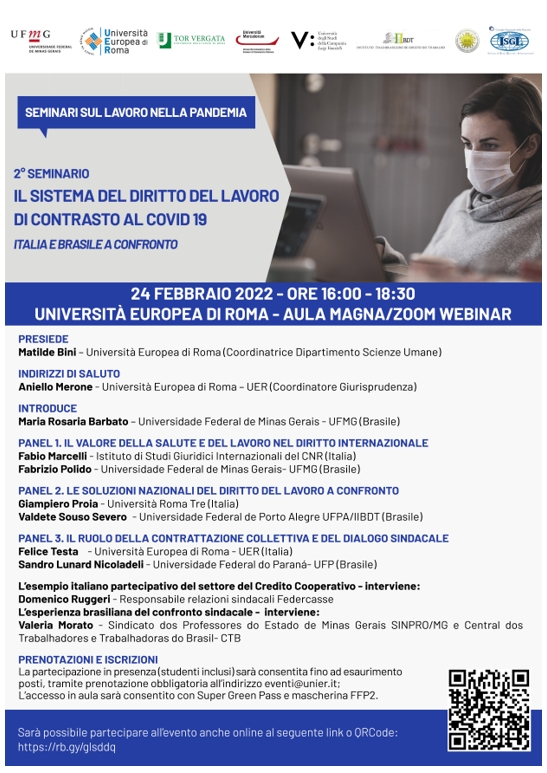 Il seminario è accessibile anche on line previa registrazione sulla piattaforma Zoom Webinar all'indirizzo: https://rb.gy/glsddq
