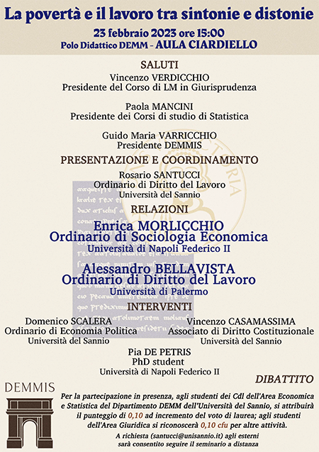 A richiesta (santucci@unisannio.it) agli esterni sarà consentito seguire il seminario a distanza