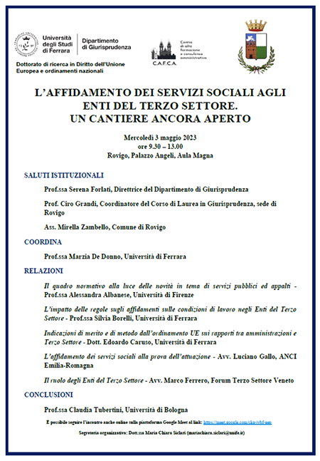 Segreteria organizzativa: Dott.ssa Maria Chiara Siclari (mariachiara.siclari@unife.it)