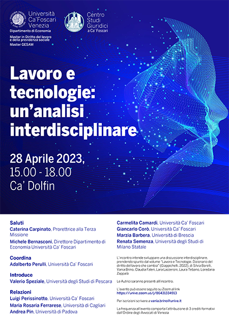 L’evento può essere seguito su Zoom al link https://unive.zoom.us/j/86431334913