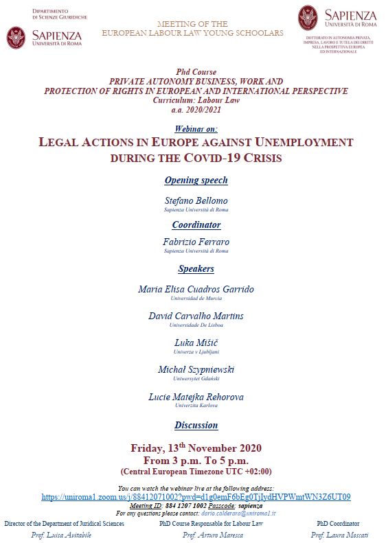 Da Ven, 13/11/2020 a Ven, 13/11/2020 Mode Online-only 14/11/2022 Legal actions in Europe against Unemployment during the Covid-19 Crisis online only | 3 pm (download locandina in formato .