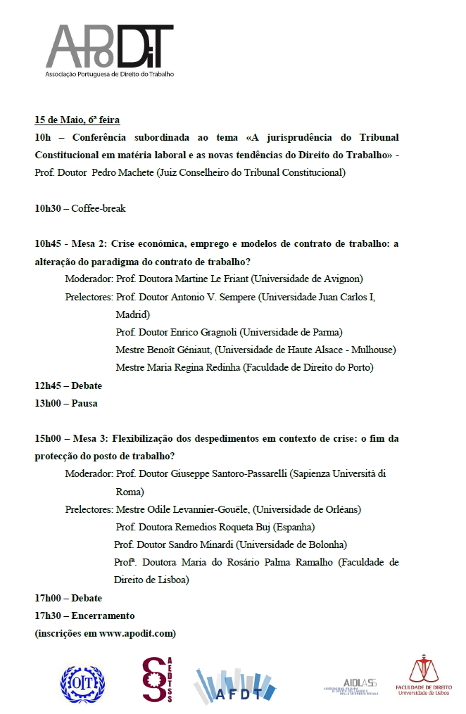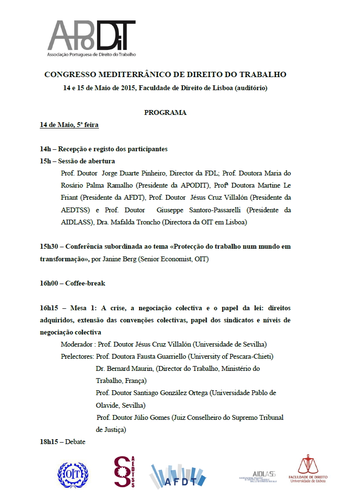 LISBOA - Congresso Mediterranico de direito do trabalho (14-15 de Maio 2015)